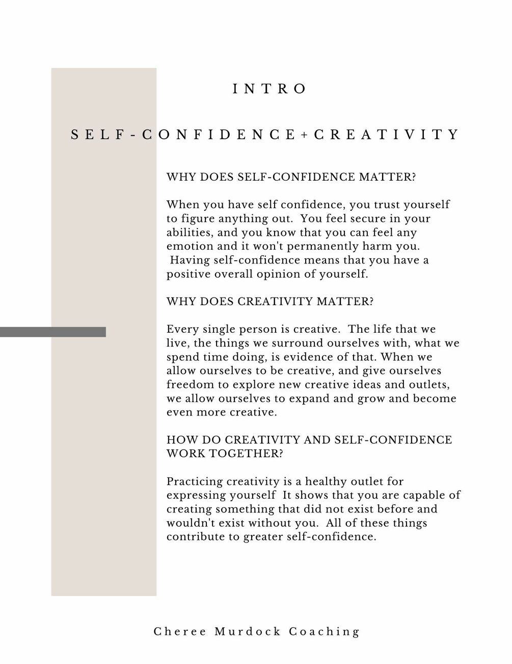 A 17 page workbook that talks about the importance of developing self-confidence, creativity, and how the two work together. This mini guide contains tips and exercises from Tai Lee Photography, a professional photographer of 12+ years, and Cheree Murdock Coaching, a professional life coach who specializes in working with teens.